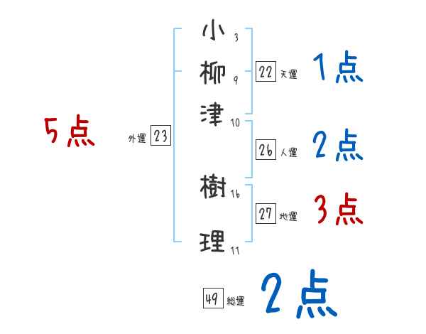 小柳津樹理さんの画数の鑑定結果