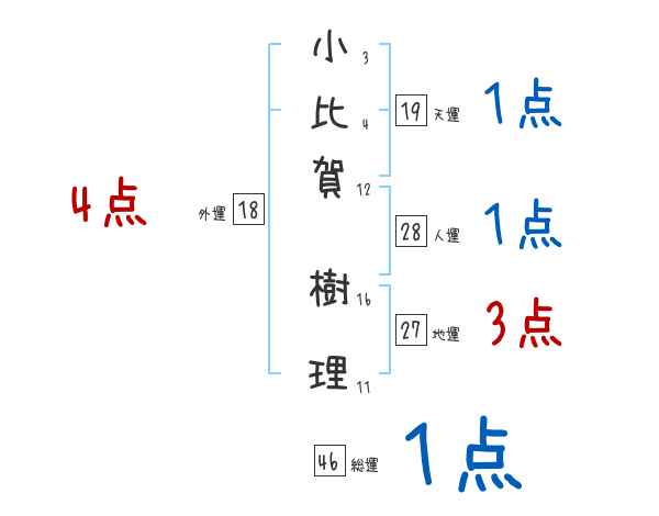 外運![]() | 小比賀樹理さんの外運は18画の4つ星!情熱的で剛気。忍耐力があり信頼される。 生活面を象徴する運勢です。外部から受ける影響力を表し、結婚運、家庭運や職場、環境への順応性を表します。 |