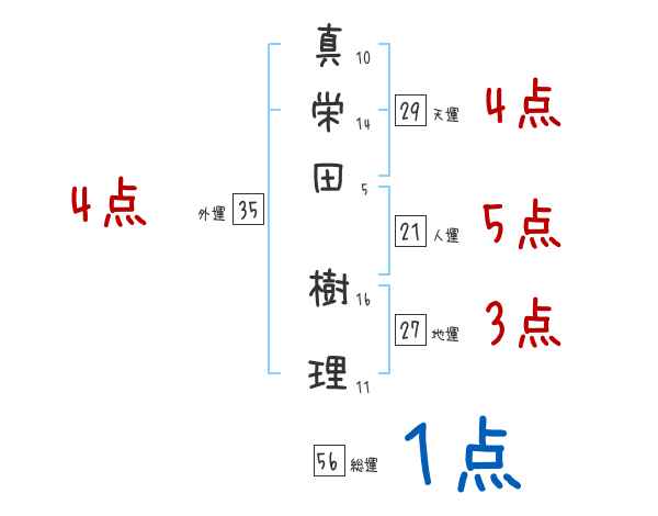 真栄田樹理さんの画数の鑑定結果