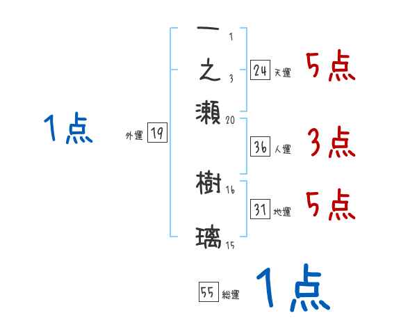 外運![]() | 一之瀬樹璃さんの外運は19画の1つ星!優れた才能を持ちますが、協調性が足りないことも。周りの人と協力する事を意識しましょう。 生活面を象徴する運勢です。外部から受ける影響力を表し、結婚運、家庭運や職場、環境への順応性を表します。 |