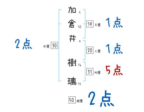 加倉井樹璃さんの画数の鑑定結果