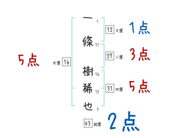 一條樹稀也さんの画数の鑑定結果