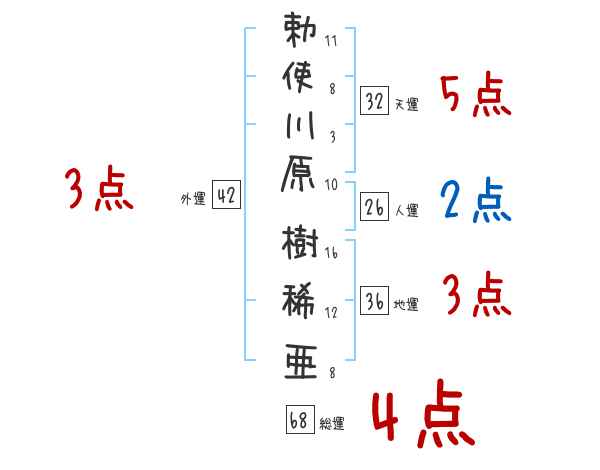 勅使川原樹稀亜さんの画数の鑑定結果