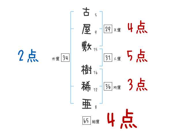 天運![]() | 古屋敷樹稀亜さんの天運は29画の4つ星!完全主義で才能がある。厳格な心の持ち主。 家系が持つ宿命的な運勢を表します。祖先から受け継いだ苗字ですので自分の力が及びません。家柄を象徴します。 |