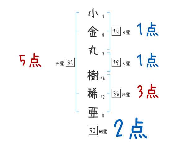 小金丸樹稀亜さんの画数の鑑定結果