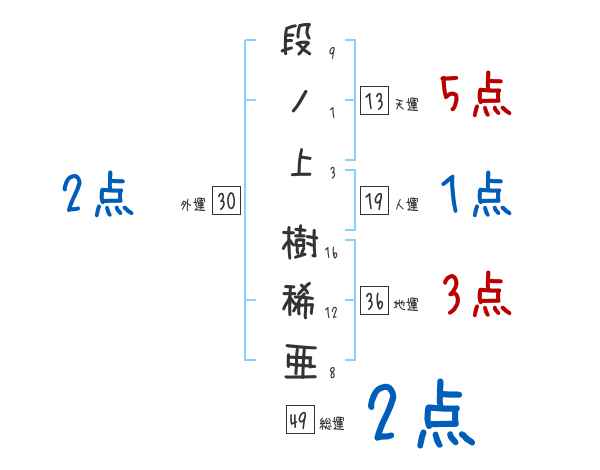 段ノ上樹稀亜さんの画数の鑑定結果