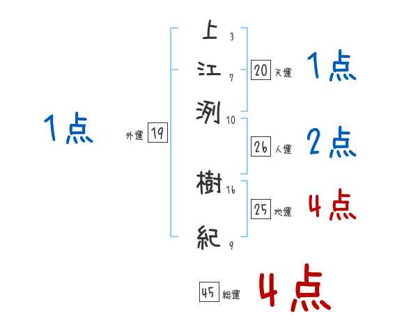 上江洌樹紀さんの画数の鑑定結果