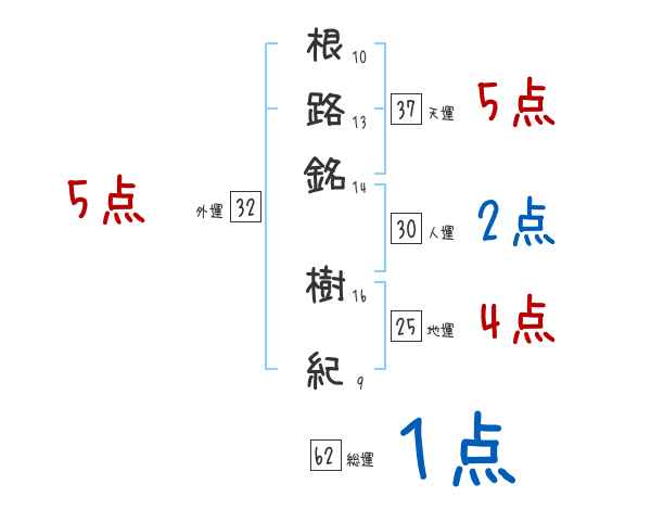 根路銘樹紀さんの画数の鑑定結果