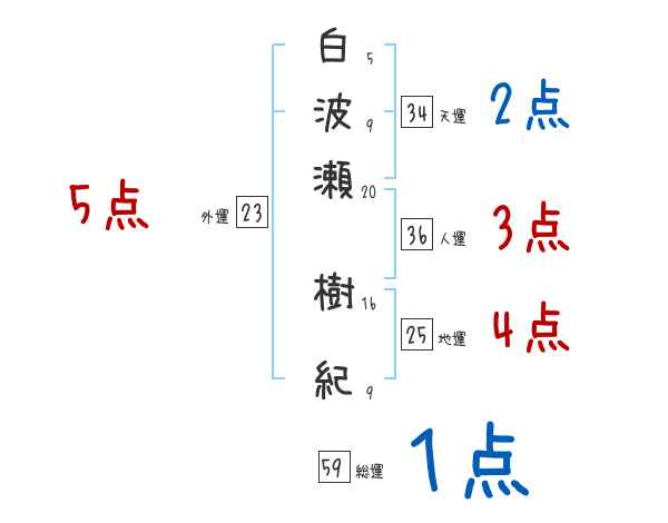 天運![]() | 白波瀬樹紀さんの天運は34画の2つ星!独創性に優れるが、自尊心が強く災難に注意しましょう。 家系が持つ宿命的な運勢を表します。祖先から受け継いだ苗字ですので自分の力が及びません。家柄を象徴します。 |