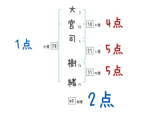 大宮司樹緒さんの画数の鑑定結果