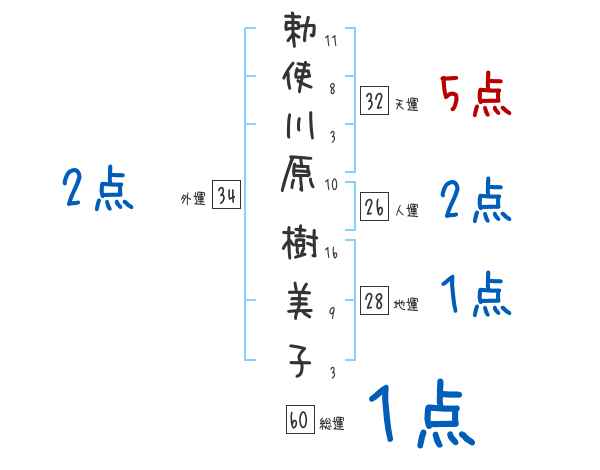 勅使川原樹美子さんの画数の鑑定結果