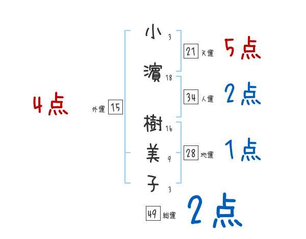 小濵樹美子さんの画数の鑑定結果
