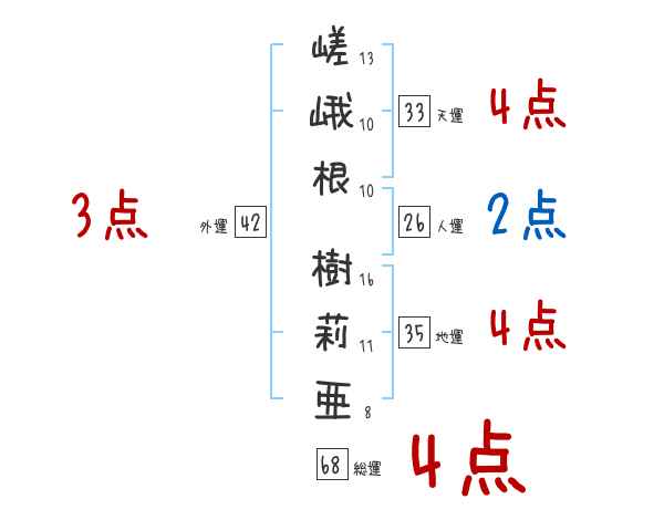 嵯峨根樹莉亜さんの画数の鑑定結果