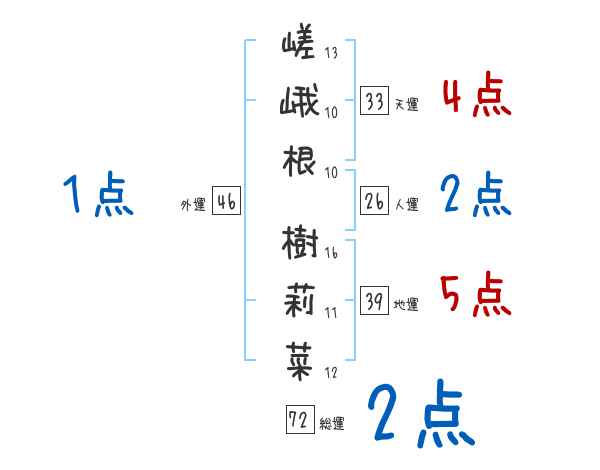 嵯峨根樹莉菜さんの画数の鑑定結果