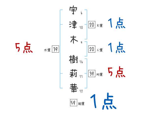 宇津木樹莉華さんの画数の鑑定結果