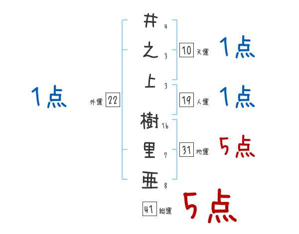 外運![]() | 井之上樹里亜さんの外運は22画の1つ星!努力することが苦手ないっぽう手先が器用。芸術性にも優れる。 生活面を象徴する運勢です。外部から受ける影響力を表し、結婚運、家庭運や職場、環境への順応性を表します。 |