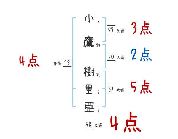 小鷹樹里亜さんの画数の鑑定結果