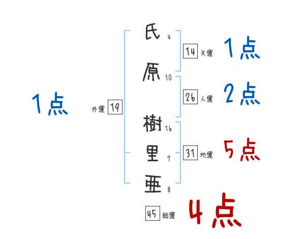 天運![]() | 氏原樹里亜さんの天運は14画の1つ星!人に対して優しいがストレスを溜め込みがち。人間関係のトラブルを避けるよう気をつけましょう。 家系が持つ宿命的な運勢を表します。祖先から受け継いだ苗字ですので自分の力が及びません。家柄を象徴します。 |