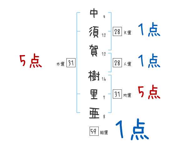 中須賀樹里亜さんの画数の鑑定結果