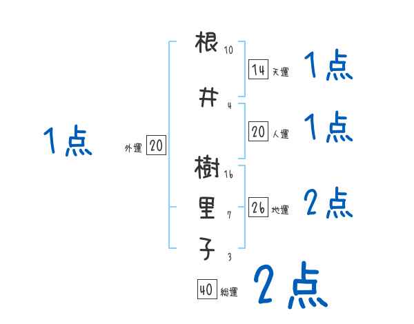 天運![]() | 根井樹里子さんの天運は14画の1つ星!人に対して優しいがストレスを溜め込みがち。人間関係のトラブルを避けるよう気をつけましょう。 家系が持つ宿命的な運勢を表します。祖先から受け継いだ苗字ですので自分の力が及びません。家柄を象徴します。 |