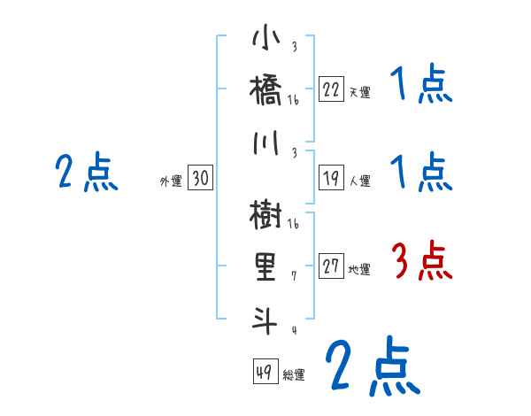 総運![]() | 小橋川樹里斗さんの総運は49画の2つ星!不安定な性格で明暗がある人生。周りの人には支援されやすい。 あなたの人生を表す1番重要な運勢です。生涯を通じて影響する総合運となり、主に50歳以降の晩年期に影響を及ぼします。 |