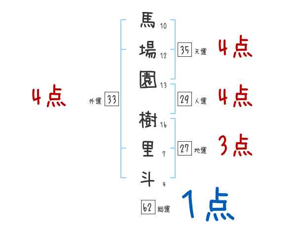 馬場園樹里斗さんの画数の鑑定結果