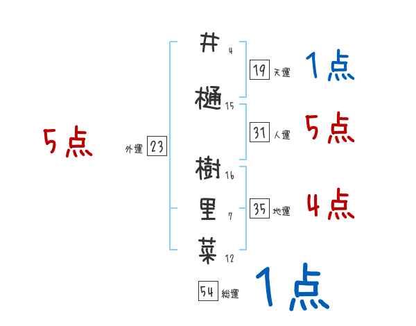 外運![]() | 井樋樹里菜さんの外運は23画の5つ星!想像力に優れ活力がある。一代で成功し名誉を手に入れる。 生活面を象徴する運勢です。外部から受ける影響力を表し、結婚運、家庭運や職場、環境への順応性を表します。 |
