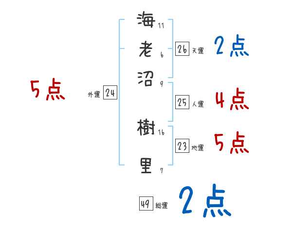 地運![]() | 海老沼樹里さんの地運は23画の5つ星!想像力に優れ活力がある。一代で成功し名誉を手に入れる。 個性を表す基礎的な運勢です。性格形成や対人関係、行動力など家庭環境に影響されます。主に誕生してから20歳くらいまでの若年期の運勢を表します。 |