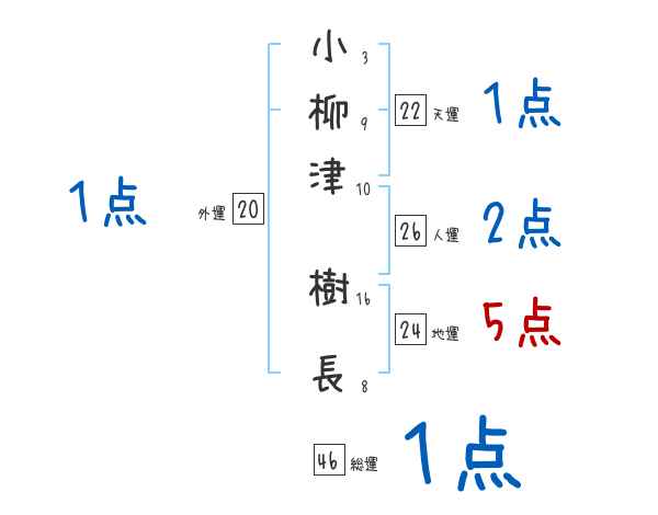 小柳津樹長さんの画数の鑑定結果