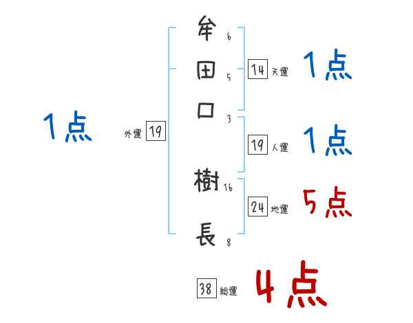 牟田口樹長さんの画数の鑑定結果