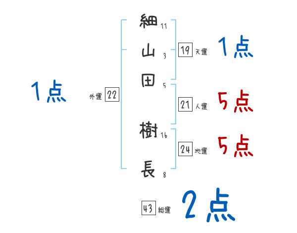 総運![]() | 細山田樹長さんの総運は43画の2つ星!頑固な性格で独立心が強いかも。やや非現実的で浪費に注意しましょう。 あなたの人生を表す1番重要な運勢です。生涯を通じて影響する総合運となり、主に50歳以降の晩年期に影響を及ぼします。 |