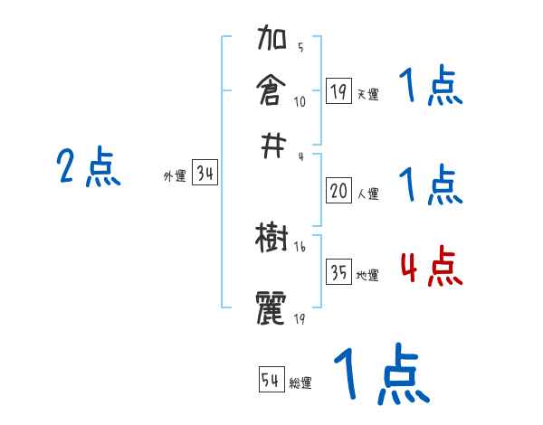 外運![]() | 加倉井樹麗さんの外運は34画の2つ星!独創性に優れるが、自尊心が強く災難に注意しましょう。 生活面を象徴する運勢です。外部から受ける影響力を表し、結婚運、家庭運や職場、環境への順応性を表します。 |