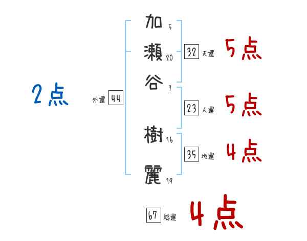天運![]() | 加瀬谷樹麗さんの天運は32画の5つ星!柔軟性があり成功する。チャンスが多く金運が良い。 家系が持つ宿命的な運勢を表します。祖先から受け継いだ苗字ですので自分の力が及びません。家柄を象徴します。 |