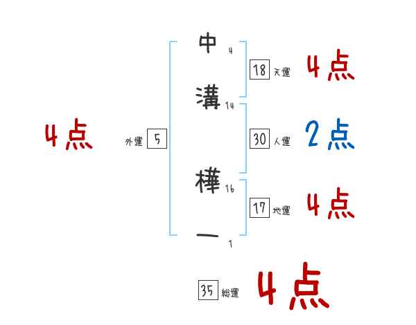中溝樺一さんの画数の鑑定結果