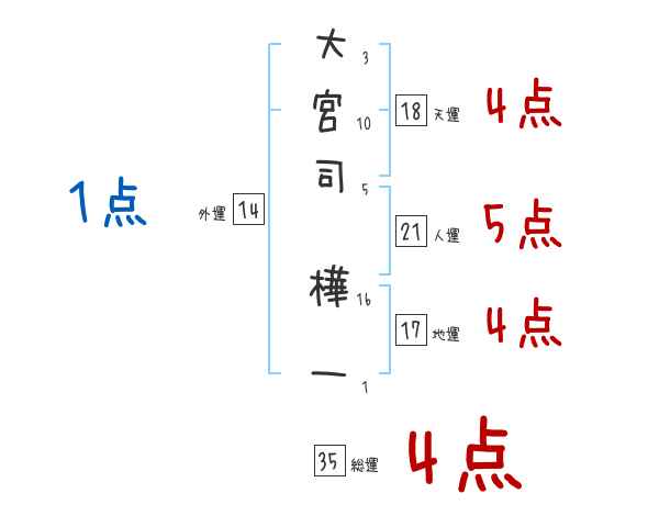 大宮司樺一さんの画数の鑑定結果