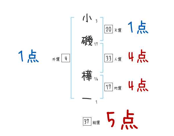 小磯樺一さんの画数の鑑定結果