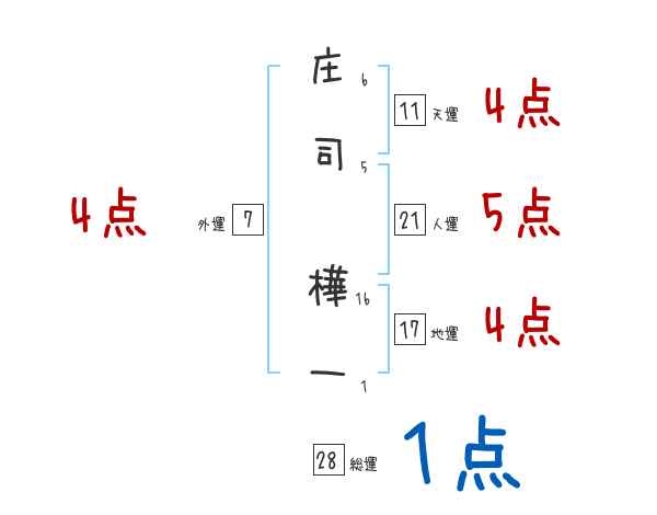 庄司樺一さんの画数の鑑定結果