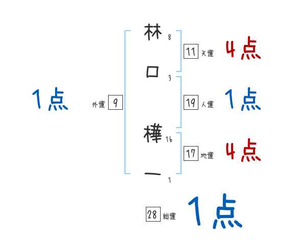 林口樺一さんの画数の鑑定結果