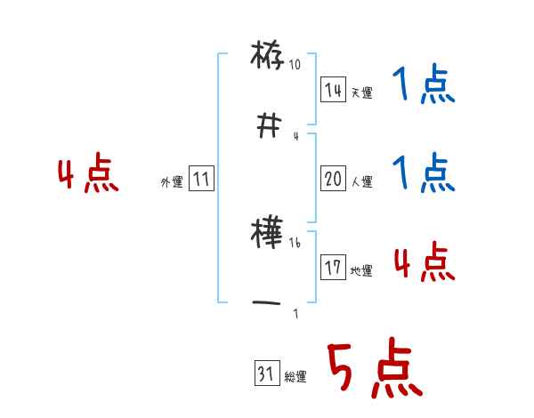 総運![]() | 栫井樺一さんの総運は31画の5つ星!社交性があり判断力に優れる。順風満帆な人生で円満な生活。 あなたの人生を表す1番重要な運勢です。生涯を通じて影響する総合運となり、主に50歳以降の晩年期に影響を及ぼします。 |