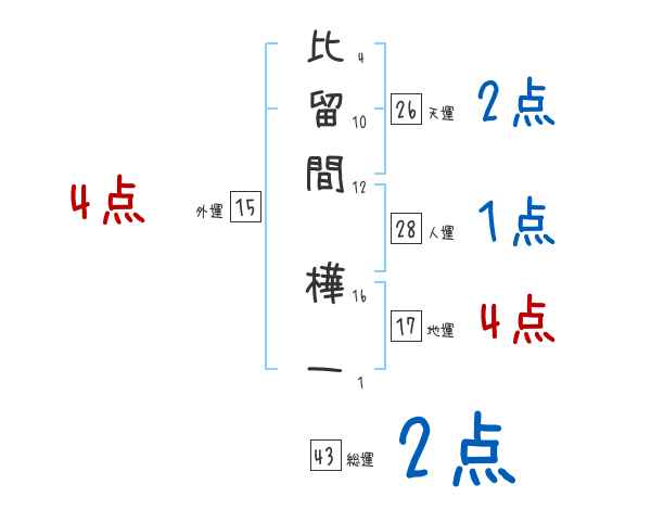 比留間樺一さんの画数の鑑定結果