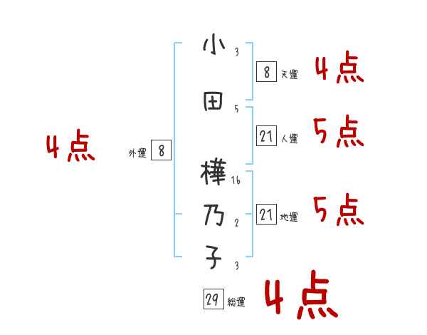 小田樺乃子さんの画数の鑑定結果