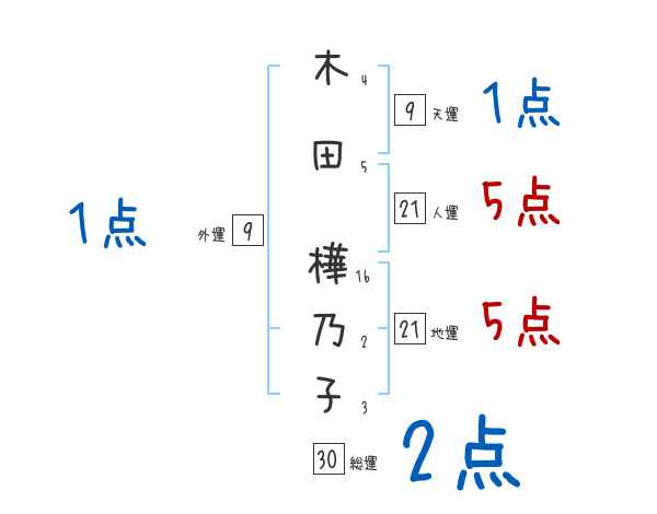 地運![]() | 木田樺乃子さんの地運は21画の5つ星!統率力がある。独立し成功する。名誉を手に入れる。 個性を表す基礎的な運勢です。性格形成や対人関係、行動力など家庭環境に影響されます。主に誕生してから20歳くらいまでの若年期の運勢を表します。 |