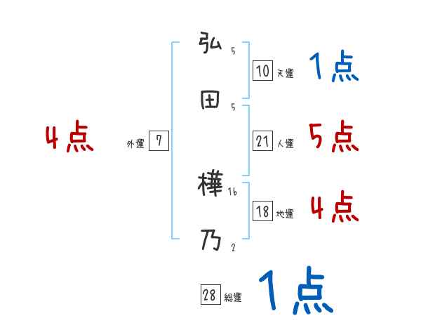 総運![]() | 弘田樺乃さんの総運は28画の1つ星!家庭環境に注意。スポーツで活躍できる能力があるかも。 あなたの人生を表す1番重要な運勢です。生涯を通じて影響する総合運となり、主に50歳以降の晩年期に影響を及ぼします。 |