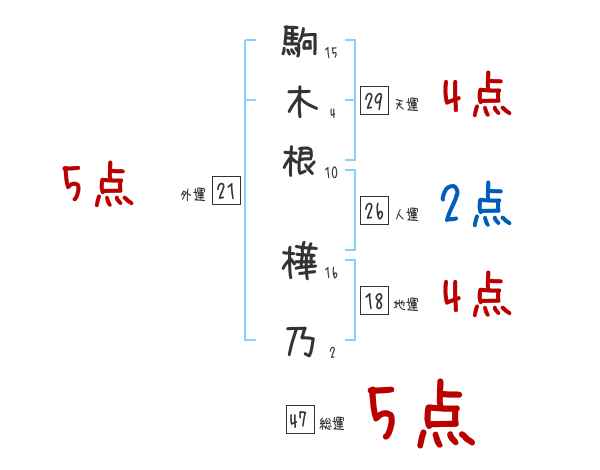 駒木根樺乃さんの画数の鑑定結果