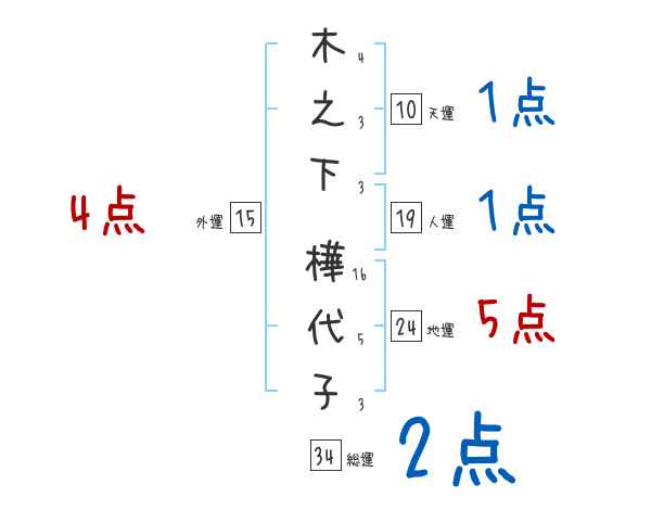 木之下樺代子さんの画数の鑑定結果