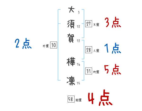 大須賀樺凛さんの画数の鑑定結果