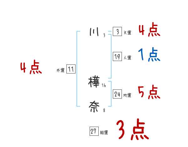 川樺奈さんの画数の鑑定結果
