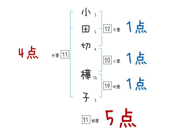 総運![]() | 小田切樺子さんの総運は31画の5つ星!社交性があり判断力に優れる。順風満帆な人生で円満な生活。 あなたの人生を表す1番重要な運勢です。生涯を通じて影響する総合運となり、主に50歳以降の晩年期に影響を及ぼします。 |