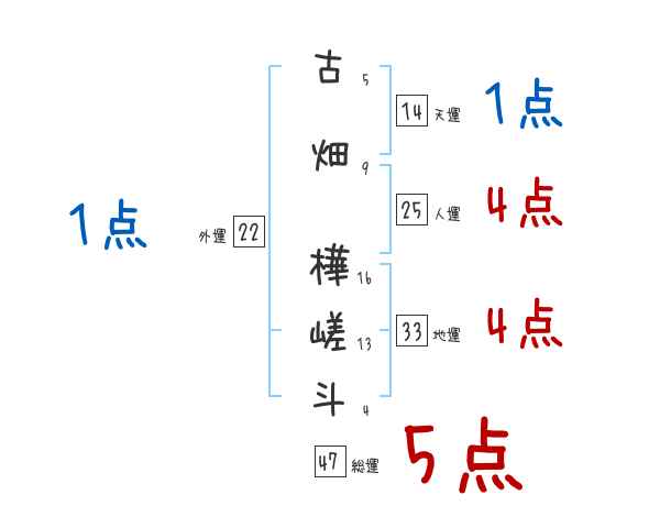 古畑樺嵯斗さんの画数の鑑定結果