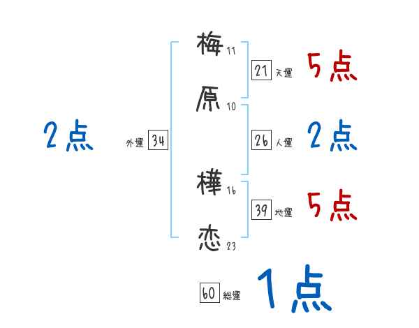梅原樺恋さんの画数の鑑定結果